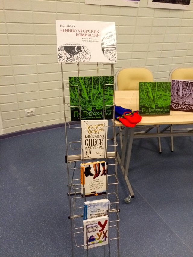 30 ноября в научной библиотеке г. Мурманска состоялось открытие выставки «Финно-угорские комиксы», а также презентация книги «Под покровом леса» финской художницы Санны Хукканен, в которой в формате комикса изложены мифы и древние сказания финнов о магической силе деревьев.