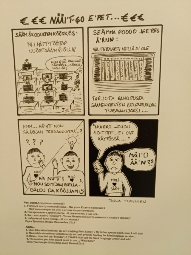Финно-угорские комиксы появились в результате проведения мастер классов, организованных Кольским саамским радио и Фондом сааамского наследия и развития. Проводили мастер классы Санна Хукконен и Анна Воронкова в населённых пунктах Мурманской области. Участие принимали простые жители, не имеющие навыков рисования, но обладающие знаниями и владеющие саамским языком и любящие саамскую культуру.