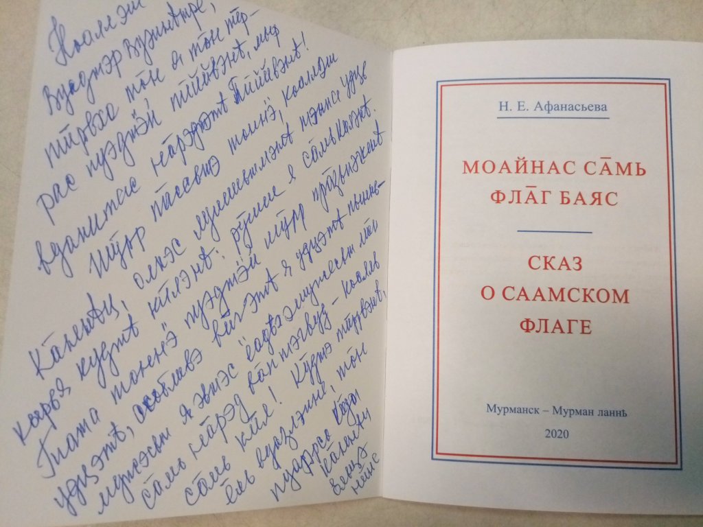 Фонд саамского наследия и развития совместно с Саамским женским форумом и Кольским саамским радио выпустили брошюру «Сказ о саамском флаге», автор Афанасьева Нина Елисеевна.