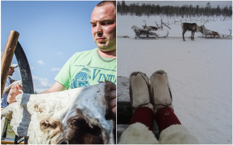 «Моя мама ездила в тундру, пару раз была в счетной комиссии, а крестная в ней была постоянно, считала оленей и принимала мясо. Крестная знала все клейма на ушах оленей нашей бригады и соседних. Я с малых лет ездил по забоям оленей, по просчетам, и знаю, как люди живут в тундре — например, были холостяцкие домики, где жили только мужчины, а были и для тех, к кому в тундру приезжали жены с детьми. С детства мне показывали саамскую оленеводческую жизнь, и я видел, как забивают оленей — для меня это не было чем-то страшным. Я наблюдал, как бабушка шила одежду и изделия из шкур оленей. И я выделываю шкуры для пошива зимней одежды и обуви. И сейчас даже зимнюю обувь не покупаю, потому что у меня все натуральное и носится годами, есть обувь, которой больше 10 лет. При должном уходе вещь будет служить, конечно, не вечно, но десяток лет точно. А потом можно сдать в музей — например, в Лопарской мамина сестра сделала мини-музей с вещами, которые остались от моей прабабушки и даже прапрабабушки», — поделился Семен Большунов.