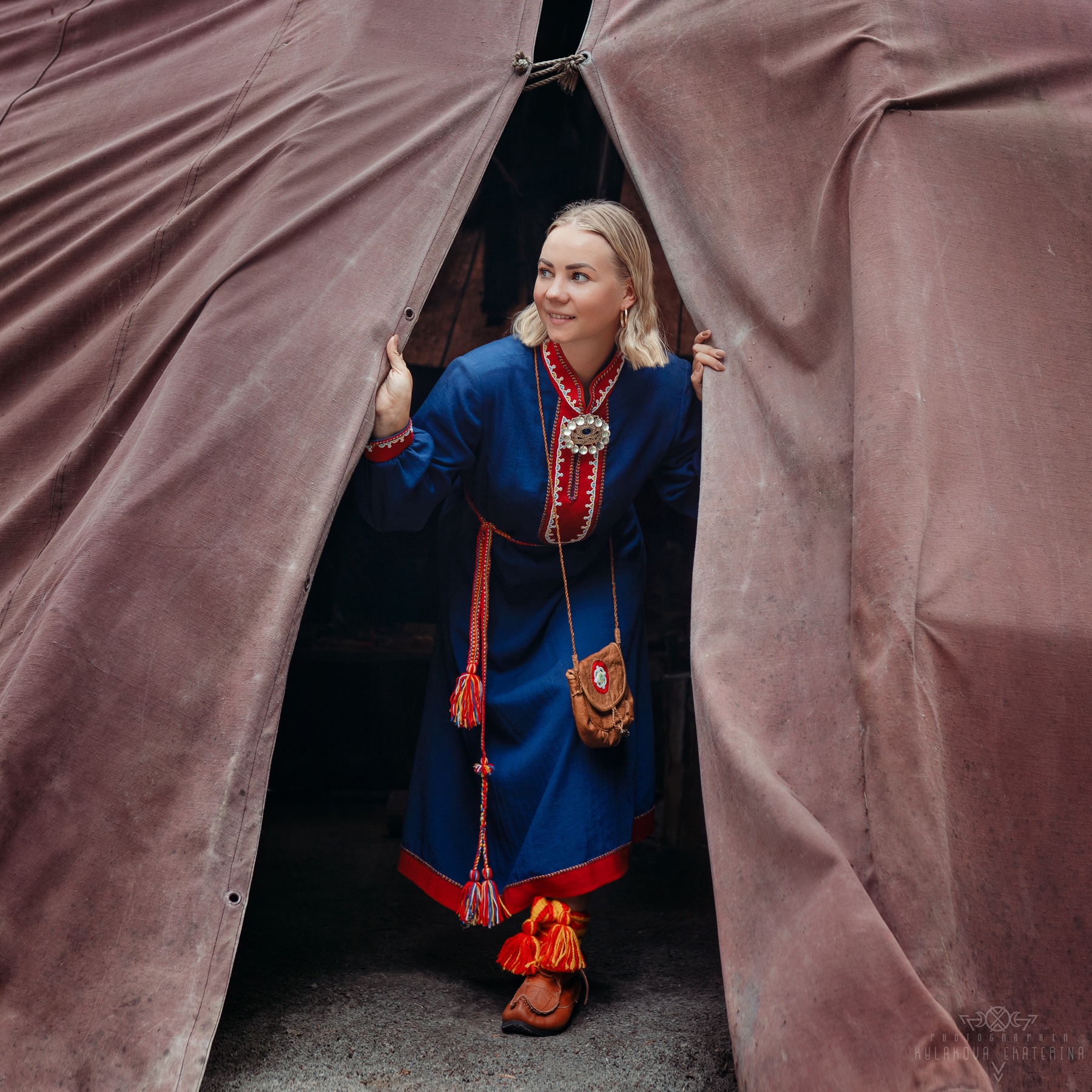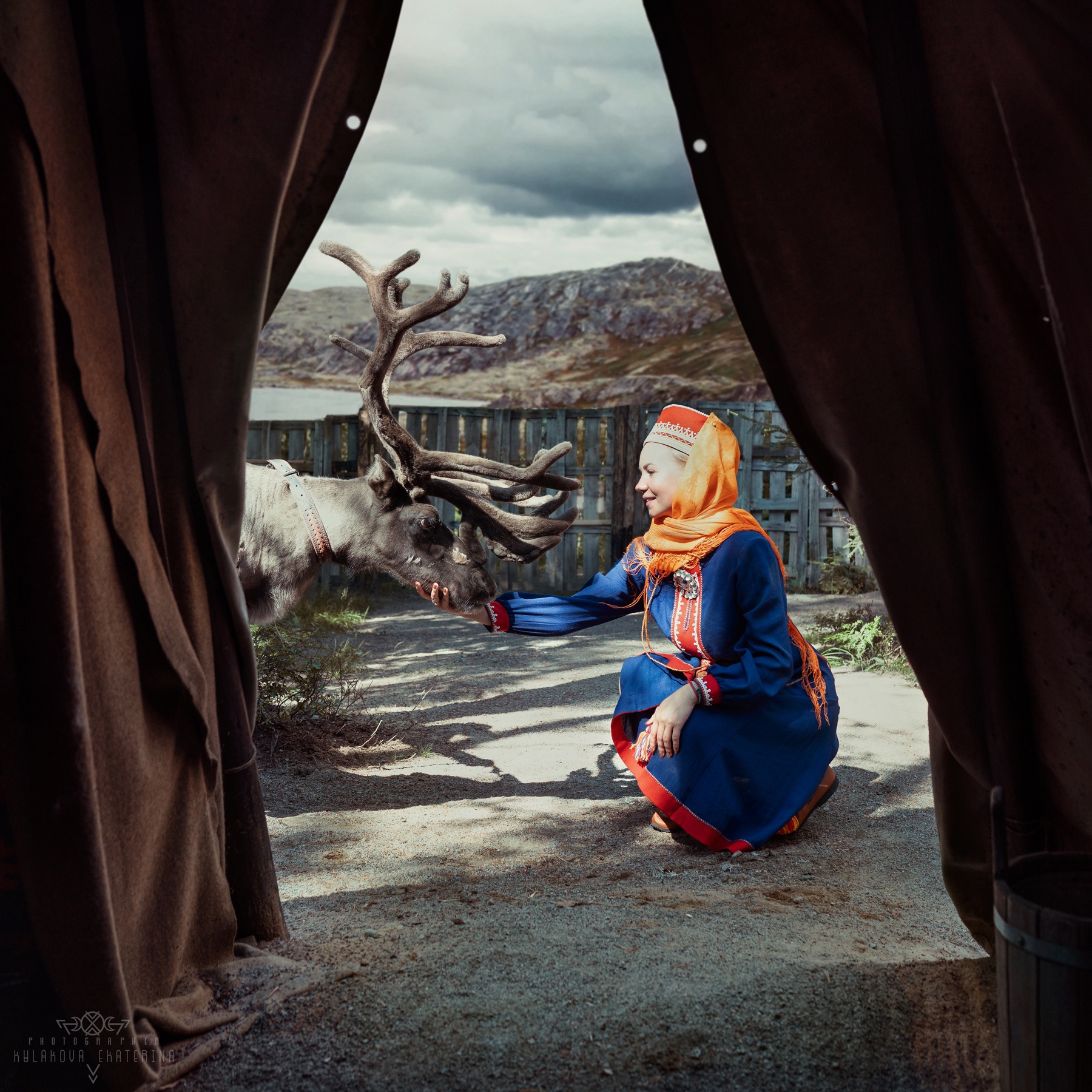 Фотографировали Диану в традиционном платье саами расшитое бисером, сделанное руками её бабушкой, которая продолжает традиционные ремёсла и по сей день. В саамском традиционном костюме закрыты кисти рук и шея. Это оберег от злых духов, чтобы не проникли в душу человека.