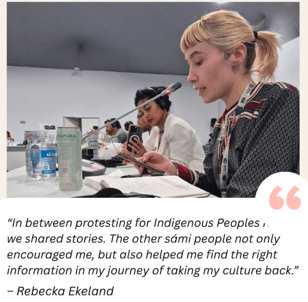 На COP30 саами представляли участники Saami Council, среди которых – президент организации Per Olof Nutti и молодая активистка Rebecka Ekeland. Их работа была сосредоточена прежде всего на платформе LCIPP – Local Communities and Indigenous Peoples Platform (Платформа местных общин и Коренных Народов) – одном из немногих механизмов в системе ООН, где Коренные Народы не только слушают, но и формируют климатическую повестку.